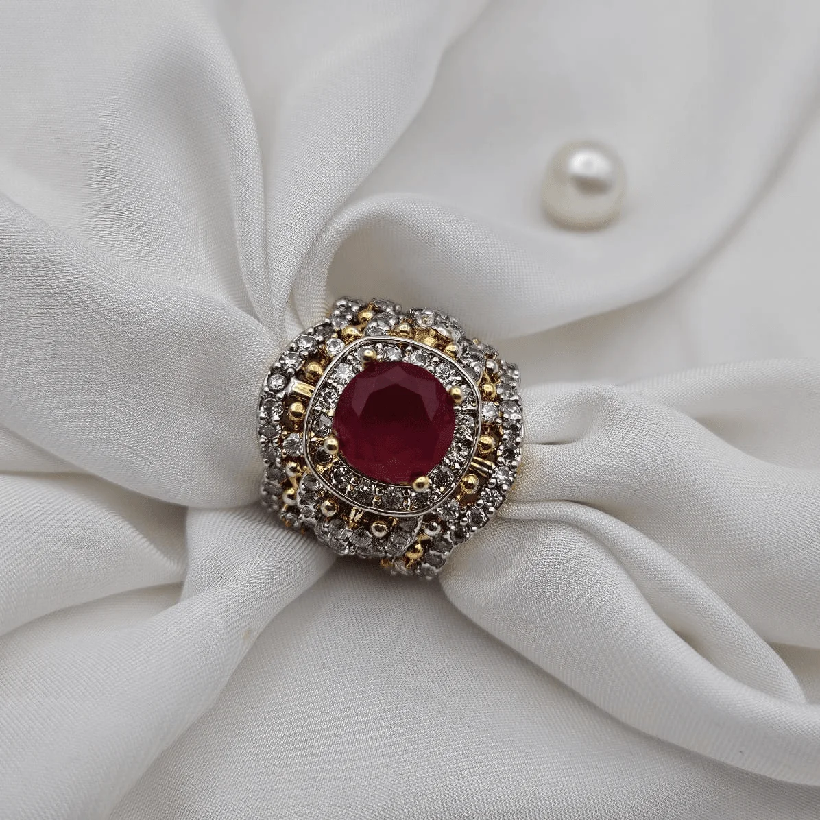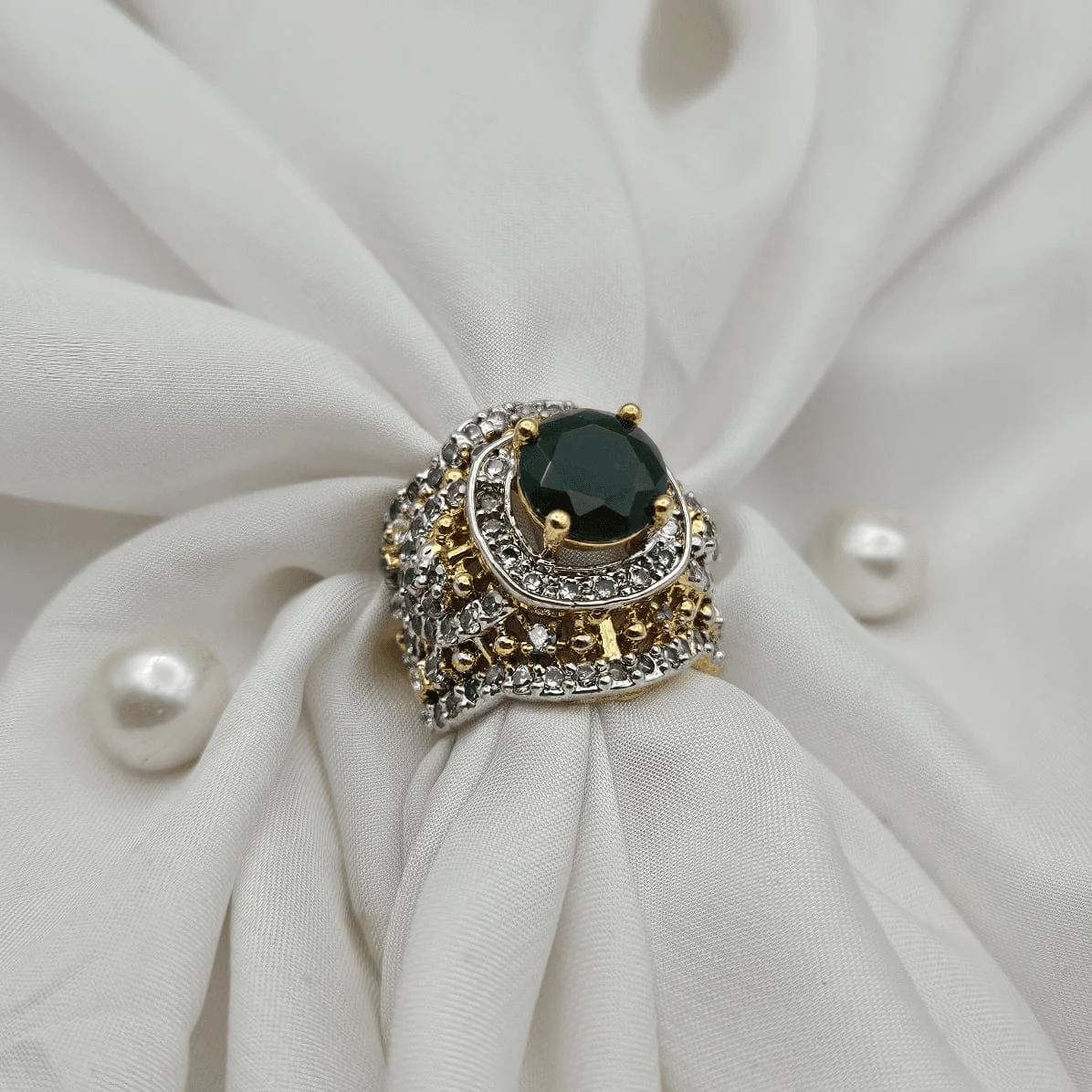 - Gold – plated jadau ring with 2 year polish guarantee.
