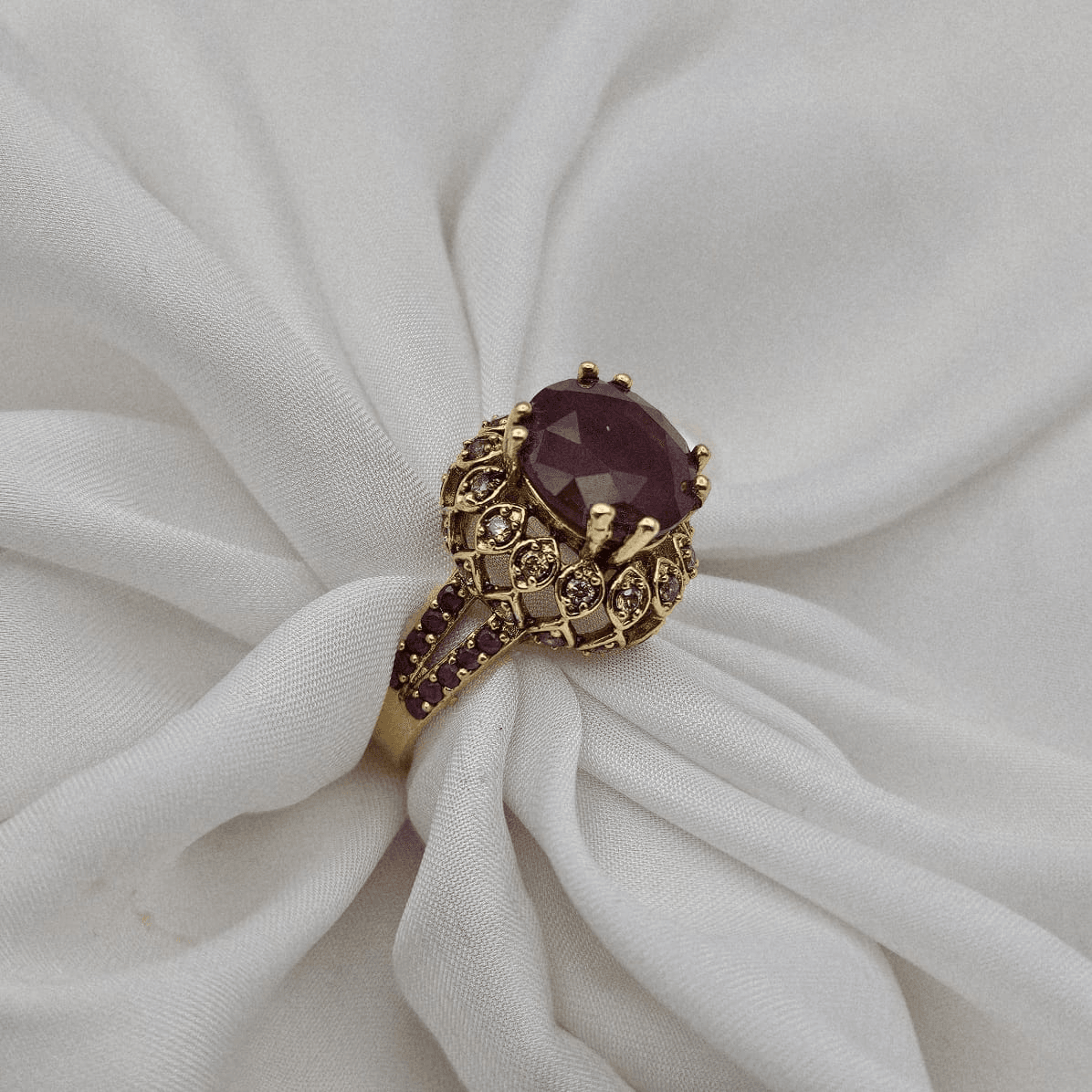 - Gold – plated jadau ring with 2 year polish guarantee.