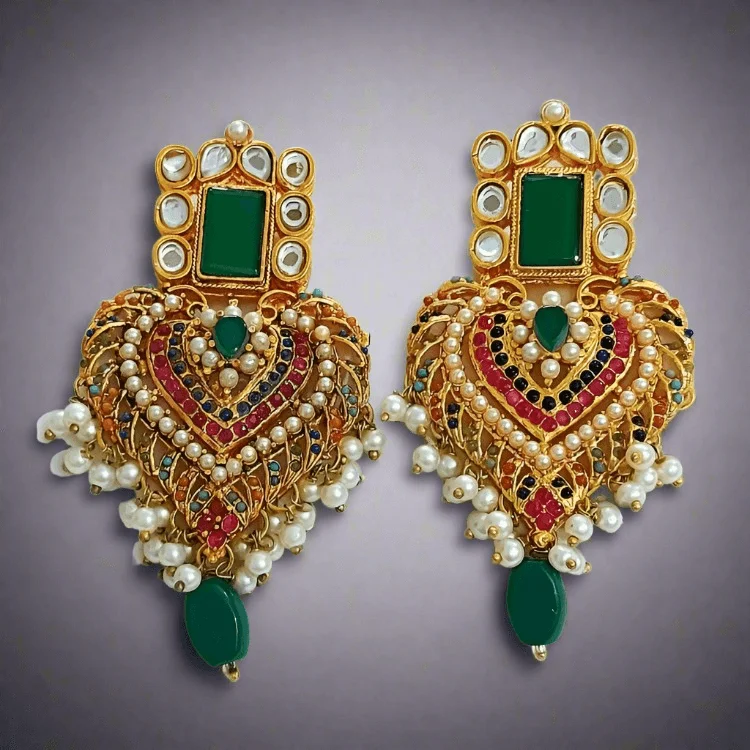 - Gold-plated on high-quality brass as a base metal studded with naurateen stones .