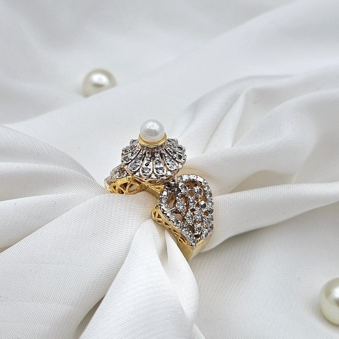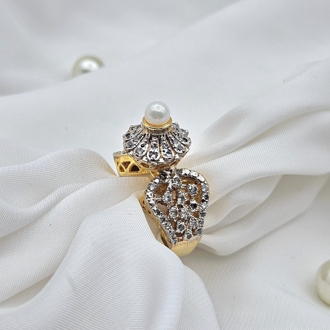 • Items are included single adjustable ring studded with Semi precious Pearl & American Zirconia.