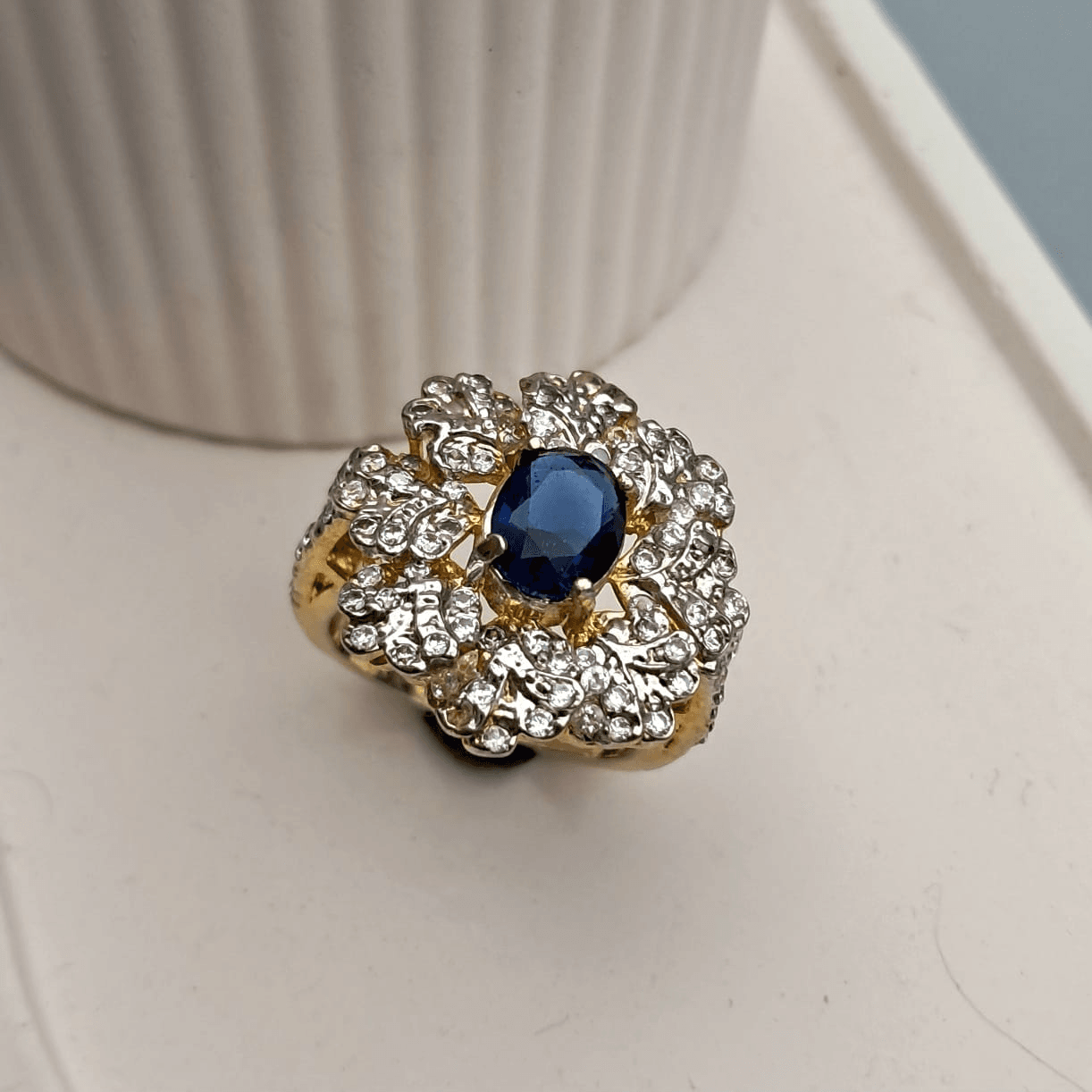 - Gold – plated jadau ring with 2 year polish guarantee.
