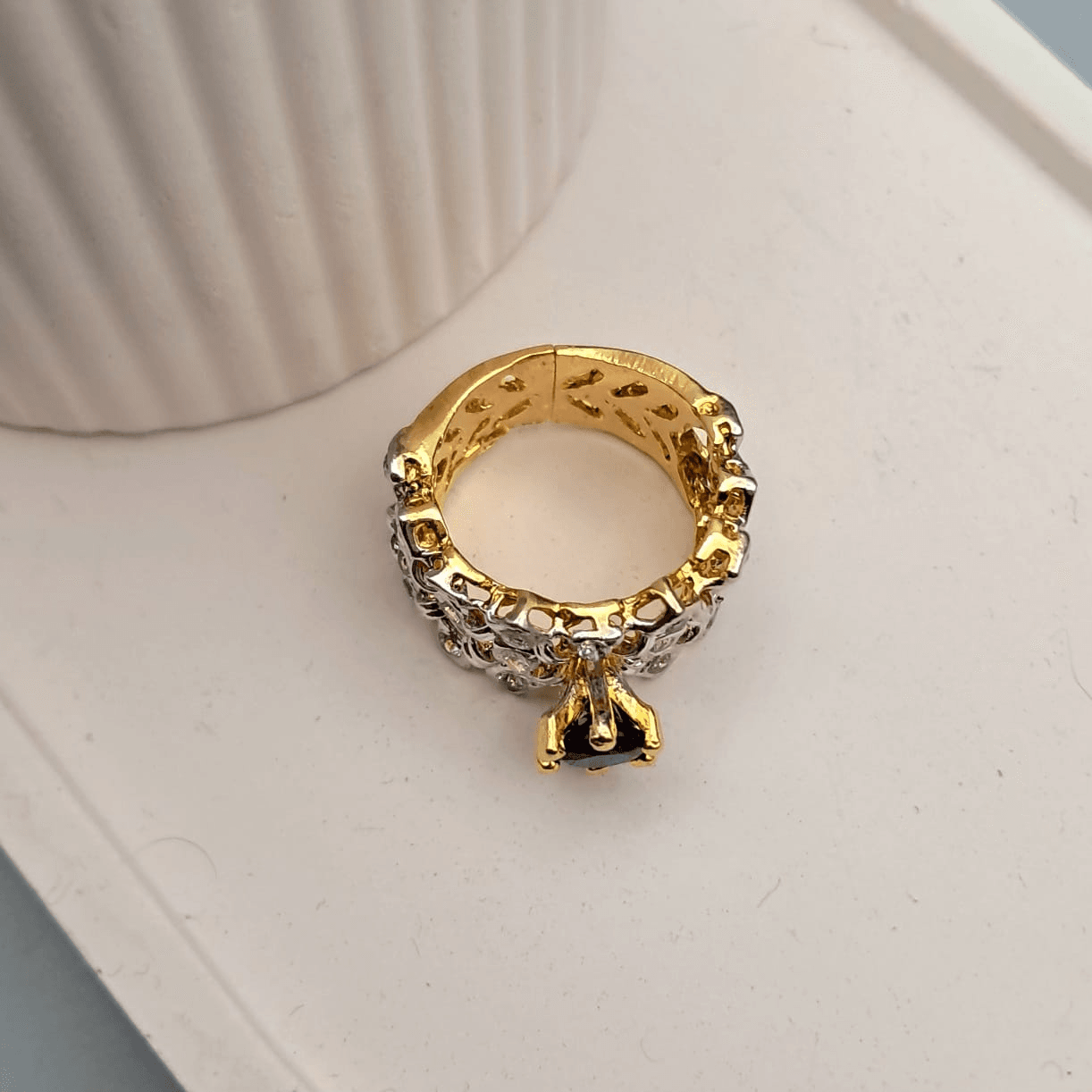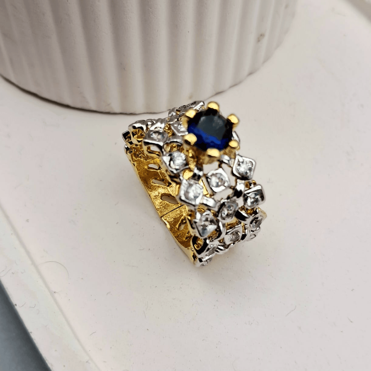 - Gold – plated jadau ring with 2 year polish guarantee.