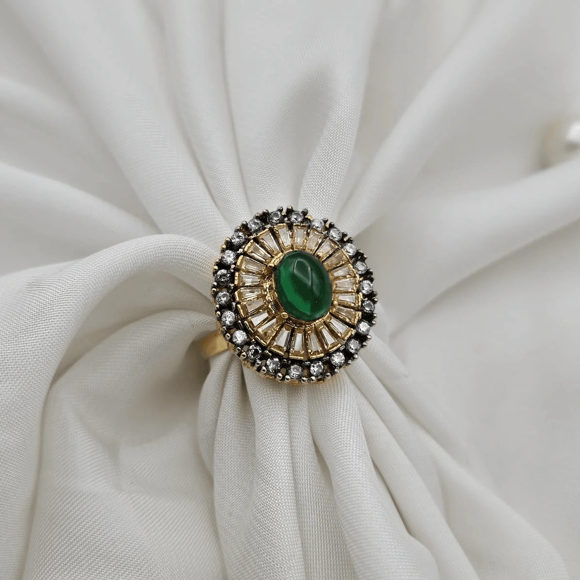 - Gold plated jadau ring with 2 year polish guarantee.